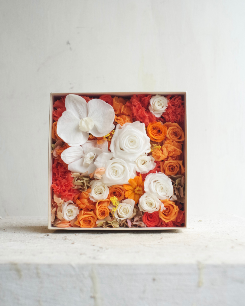 フラワーBOX【オレンジ✖胡蝶蘭】Mサイズ